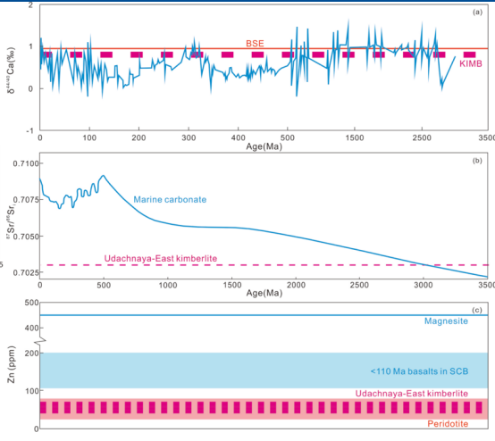 研究对象:西伯利亚Udachnaya-East金伯利岩(365 Ma)。该岩石极为新鲜、CO₂含量很高,是研究碳酸盐来源的理想样品。前人研究表明,该金伯利岩源于碳酸盐化地幔源区,且未经历显著的后期蚀变,能够较好地保留原始岩浆信息。