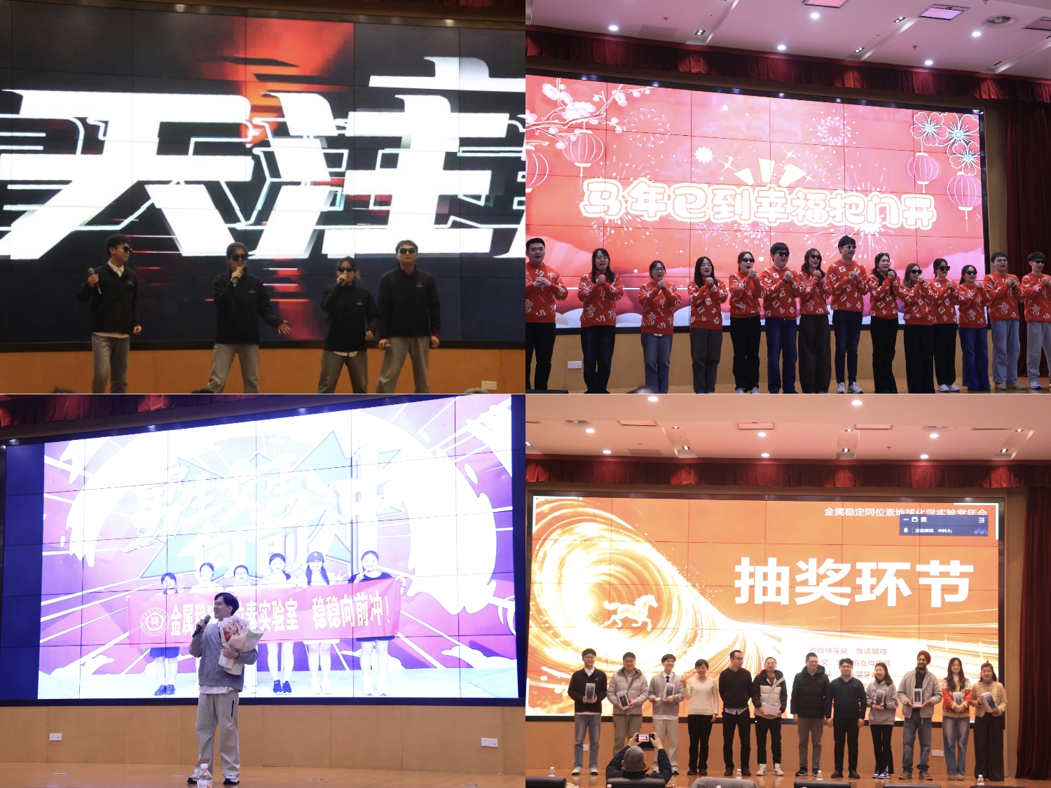 年会汇报间隙穿插了精彩纷呈的文艺表演与激动人心的抽奖环节。歌曲《大风吹》动感十足,《七里香》婉转悠扬,舞蹈《马年行大运,福气满门来》活力四射,每一个节目都赢得了现场阵阵掌声,为年会注入了满满的欢乐与温情。抽奖环节更是将气氛推向高潮,丰厚的奖品让大家收获了意外惊喜与满满幸福感。相比往年,今年年会新增多个特色节目,既让现场氛围更热烈,也展现了同学们的多才多艺与鲜活风貌。年会形式的不断丰富,既见证着实验室团队的日益壮大与温暖氛围的持续升温,也让这场年度盛会成为联结情感、凝聚力量的重要纽带。